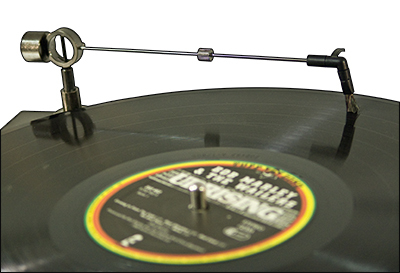 - Brosse en fibre de carbone pour une élimination parfaite de la poussière et de l'électrostatique. Se pose sur le côté de la platine. Faire en sorte que la brosse en fibre de carbone puisse atteindre le centre du plateau. La hauteur du bras doit être réglé de manière à être parallèle à la surface du disque. La pression est contrôlée en déplaçant le poids sur le bras. Le bras est électriquement conducteur de la pointe de la brosse à la base. Le câble de mise à la terre doit être raccordé à l'amplificateur de sorte à supprimer l'électrostatique.